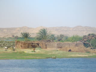 ![]() 長閑なナイル川と土の家 |