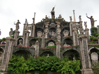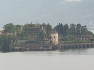 ベッラ島:マッジョーレ湖で最大の島。大きな展望庭の後、博物館へ。内部はグロテスク様式で、撮影禁止。この辺りにも歴史以前の住人がいたらしく、その遺物も展示されている。外へ出ると、有名な階段状のお庭。真っ白な孔雀が多数いるのに驚かされる。