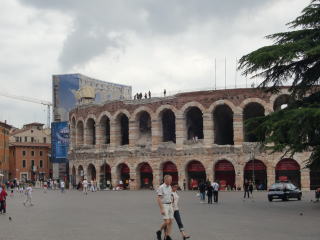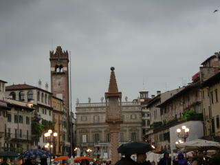 この日も悪天候。別の日のヴェローナもご覧下さい。アレーナでの野外オペラ、この日の出し物はアイーダ。