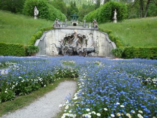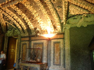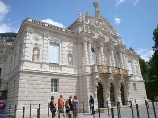 リンダーホフ城はガイドツアーのみ。バスを降りてチケット売り場へ行き、切符を買うと言語を聞かれ、時間を指定される。日本語は無いが、最初の部屋の書棚に日本語の解説書があるので、持って回る。城内は撮影禁止。城からかなりの坂を登って、洞窟へ。こちらもガイドツアーだが、何人でも入れるので混雑。最初はドイツ語、続いて英語のアナウンスがある。