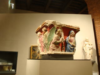 次はマダーマ宮殿。入り口の地下にローマ時代の遺跡が保存されている。内部は中世の金細工や調度品。ベネチアグラスやレースが素晴らしい。最後にモーレアントネッリの塔へ。変わった格好だが、割と新しい。内部は映像博物館というところ、建物の回りも放送局や映画館。