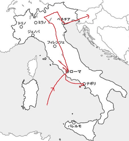 | 訪問地は ナポリ カプリ島 ローマ オルビエト アッシジ ヴェローナ ボルツァーノ ドロミテ トレント コルチナダンペッツォ ヴェネツィア |