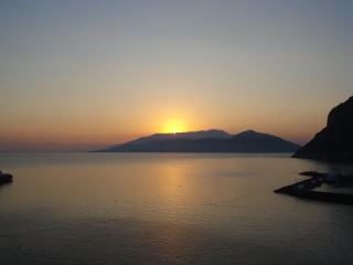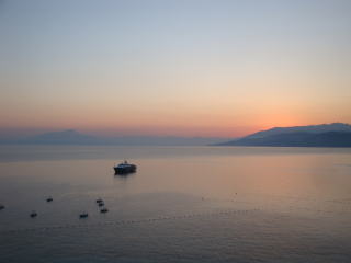 ![]() ホテル正面はヴェスビオ山。人家の明かりが見えた |