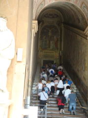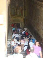 ラテラノの向かいは「聖階段教会」キリストに死刑を宣告した提督の館の階段を持ってきた?とかで、立たずに膝で階段を昇っていく熱心な信者が一杯。不信心者の私は入場有料・撮影禁止の中に入って写真を写してしまいました。