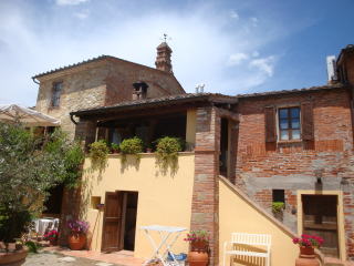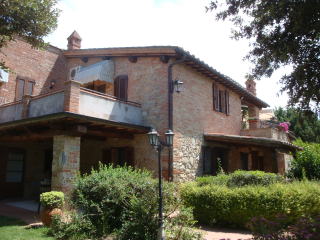 昼食はアグリツーリズモの農家で。レストランと農産物の販売所を兼ねて、宿泊は戸建てのコッテージ風。 ↓