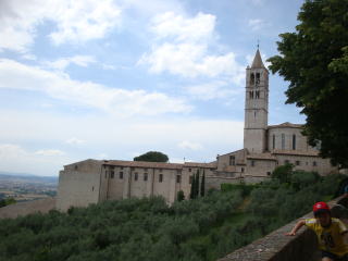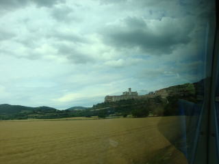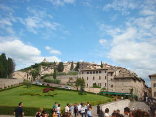 山の中腹にあるアッシジは遠くからも良く見える。駐車場からここはエスカレーターで昇っていく。