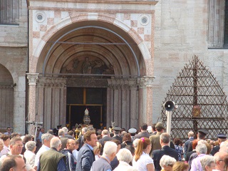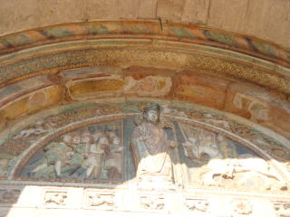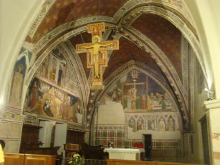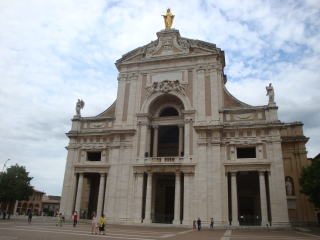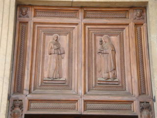 アッシジの丘の麓、聖フランシスコ逝去の場所にある教会。聖フランシスコと聖キアラの像が扉に刻まれている