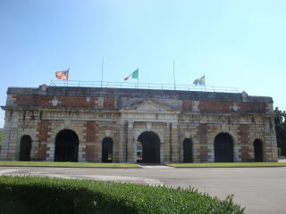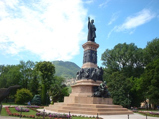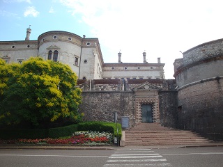 左 カトリック勢力の強大さを誇示するために作られた 巨大なブオン・コンシリオ城 右 駅前のダンテ象 |