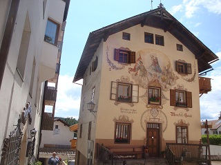 この辺りはオーストリー・チロルの色濃い壁画街道。美しい家々が並ぶ