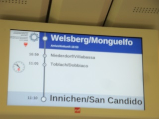 ボルツァーノからコルチナダンペッツォへの移動はとても大変でした。逆コースには直行バスがあるようですがボルツァーノ発は電車になり、複雑な乗り継ぎ多数、イタリアなのに駅名が堂々のドイツ語表示、聞く相手もなかなか適当な人が見つからず。観光局もドイツ語でした。でも景色は最高!!!