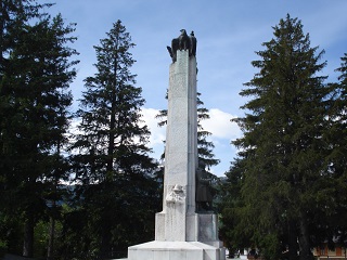 その後、時間いっぱい市内散策。大きな山を背景にドイツ風の町並みがきれい。登山家らしい記念碑も。