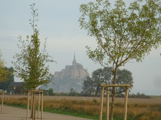 北駅からモンパルナス駅へ移動、TGVでレンヌへ。レンヌからバスでモンサンミシェルへ。バスはほぼ満員。終点は島から結構遠くなった。ここから電気バスに乗車して島の真下まで。
