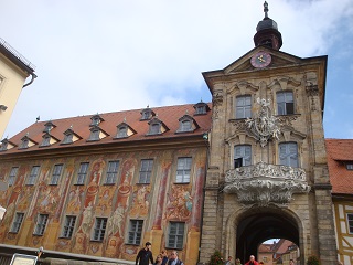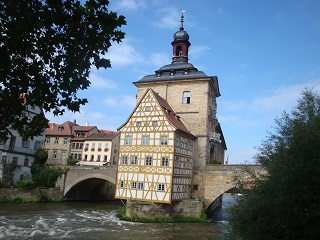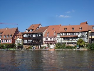 美しい水の都バンベルク:第二次大戦の戦禍を逃れ中世のたたずまいを残す古都。レグニッツ川沿いには漁師の家々が建ち並び、小ベニスと呼ばれる美しい景観。お目当てはこの町にあるメッサーシュミットホテル。