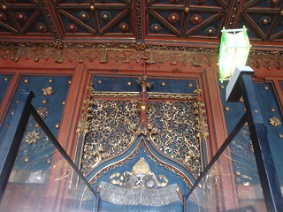 ![]() 黄金(実は真鍮)のエレベーターで上ると |