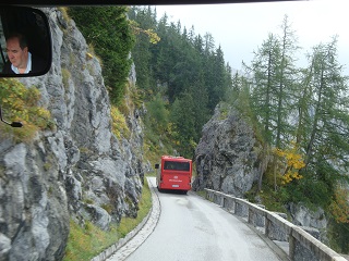 ![]() こんな険しい山道を行く |