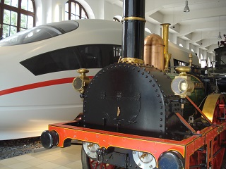 まずは駅。ニュルンベルグはドイツで初めて鉄道が敷かれた町。巨大な交通博物館には王族、ビスマルクのお召列車、古い列車などがすべて屋内に展示されている。新旧列車の並置も面白い。