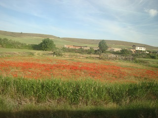 マッドリードからパンプローナへ向かう。列車から見る広大な大地。右端:羊飼いはどこで寝るのだろう。