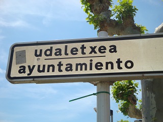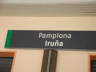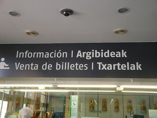 パンプローナはバスクの中心都市。標識はすべてスペイン語とバスク語の二言語表示。駅名、インフォーメーション、切符売り場、タクシー