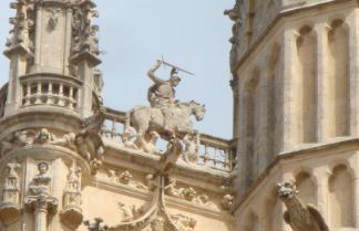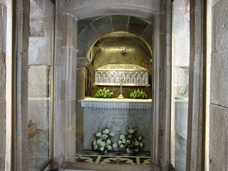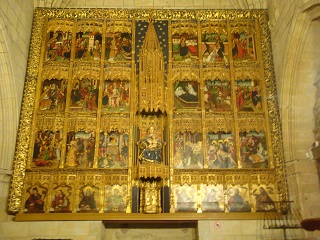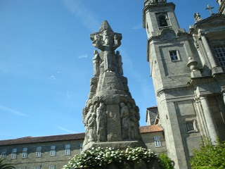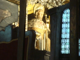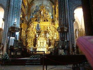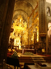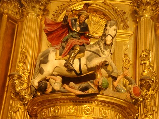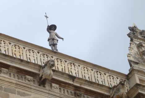 大聖堂はとても大きい。一階で入場券を買い、入口は二階。屋根の上にあるサンチャゴさんの像。結構武力派。聖堂内でも剣を振りかざして