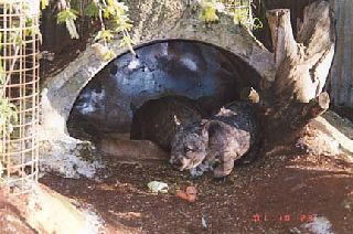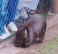 見渡す限りの砂漠の中で、先日行方不明になって一晩夜明かしをした日本人がいるらしい・・・。それは大変、とガイドにへばり付く。ここは、小型バスの方が中まで入れて有利。 復路には小さな野生動物園に寄る。夕方なのにコアラはまだ眠っている。下腹の膨らんだカンガルーは、子供を袋に入れているとのこと、随分大きくなるまで出ないのだそう。日本と同じくパラサイト。 そして人気急上昇中のウォンバット。照れて、この直後に後ろを向いてしまった。 |
