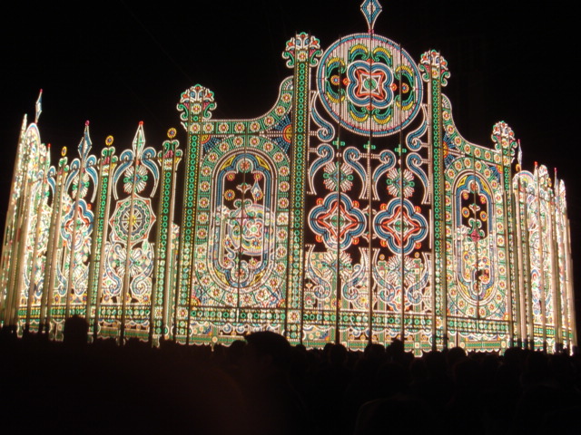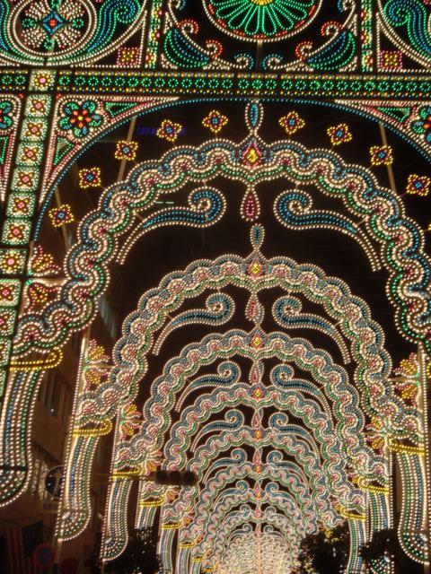 電飾なんて全く見えない場所から、大勢の人と歩き出しましたが、何度も静止させられて、途中では帰りのバスに間に合わないのではと心配してしまいました。